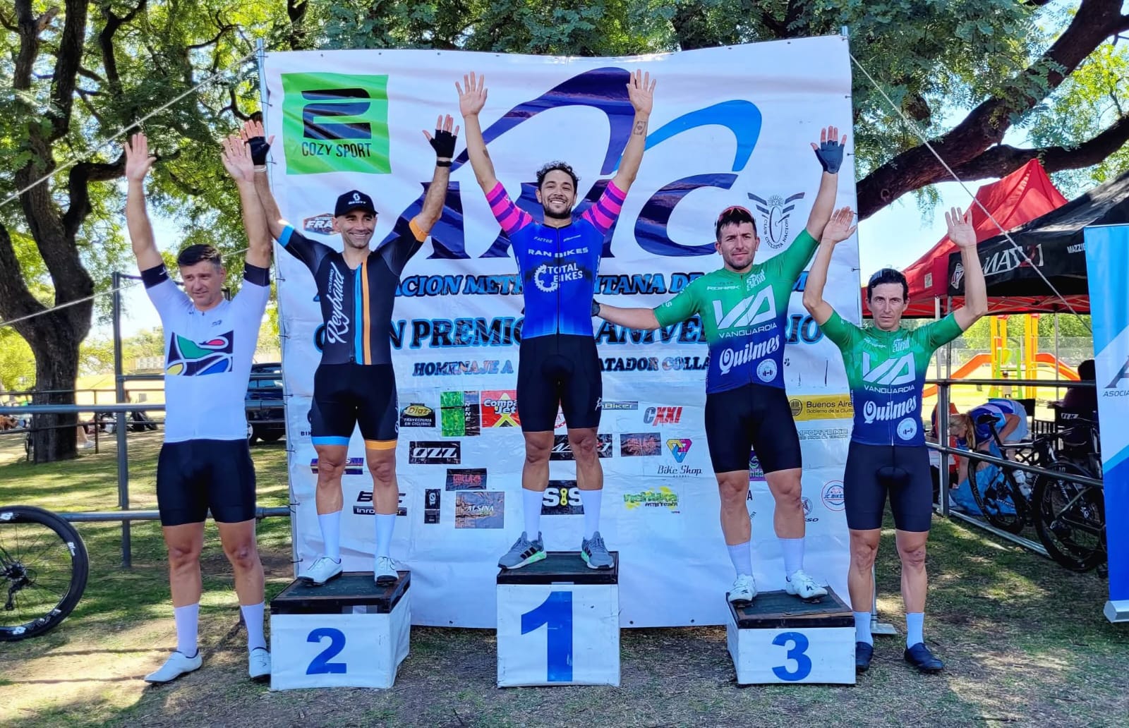 El ganador fue Marcos Mendez un gran sprinter que tiene el pais que viene de representarnos en el panamericano de pista, segundo quedo otro gran sprinter como lo es Sebastian Tolosa representando a pueblos y campos sunpeed, tercero fue el de mar del plata Agustin Fraysse del aspen bici, cuarto quedo Enrique Estevez del giant y el quinto lugar fue para Brian Rios.