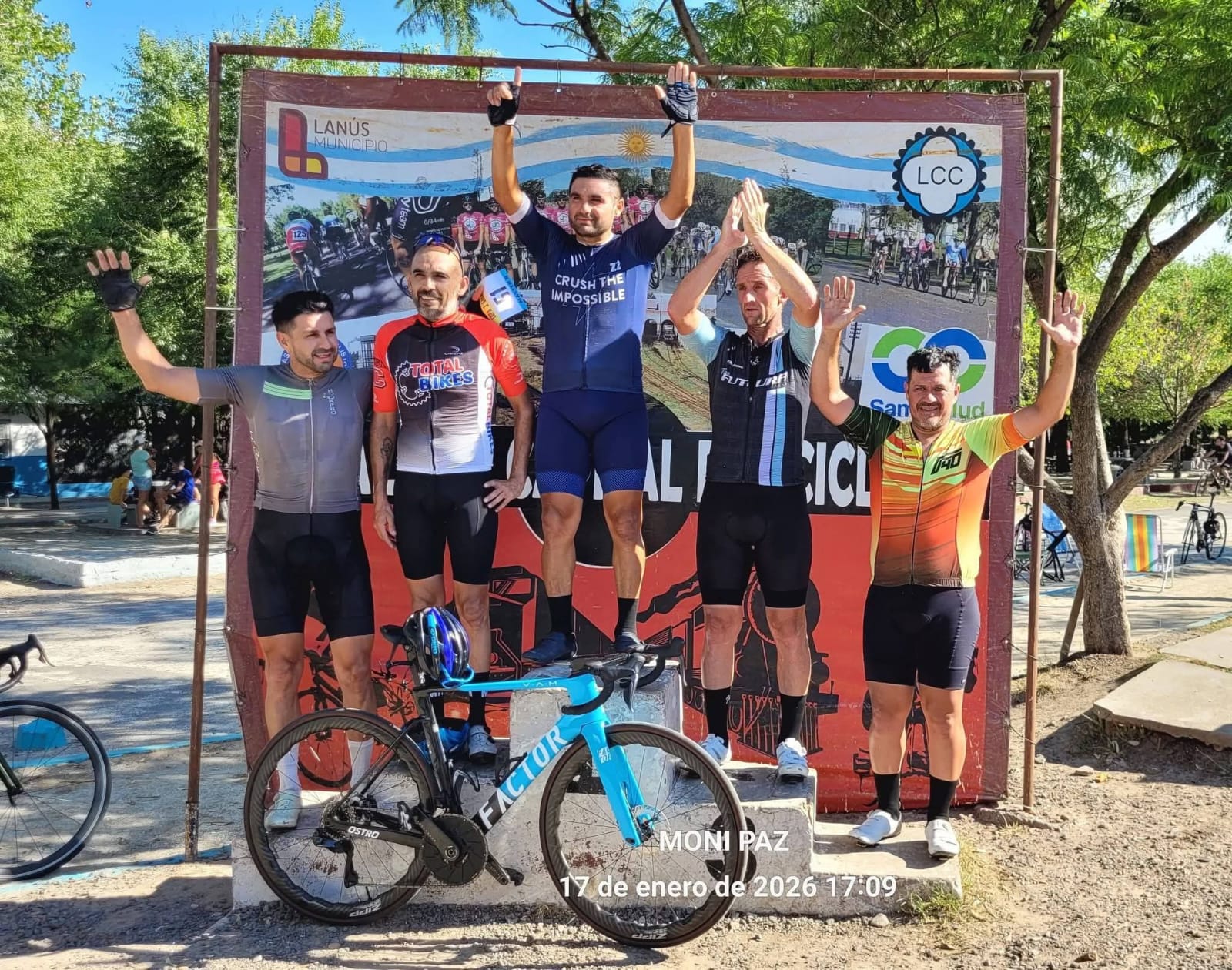 El ganador de la master E en lanus fue carlos schneider que supero a los ciclistas: rolando romero que sumo su segundo podio en la semana ya que el miercoles en zarate se quedo tambien con el segundo puesto.