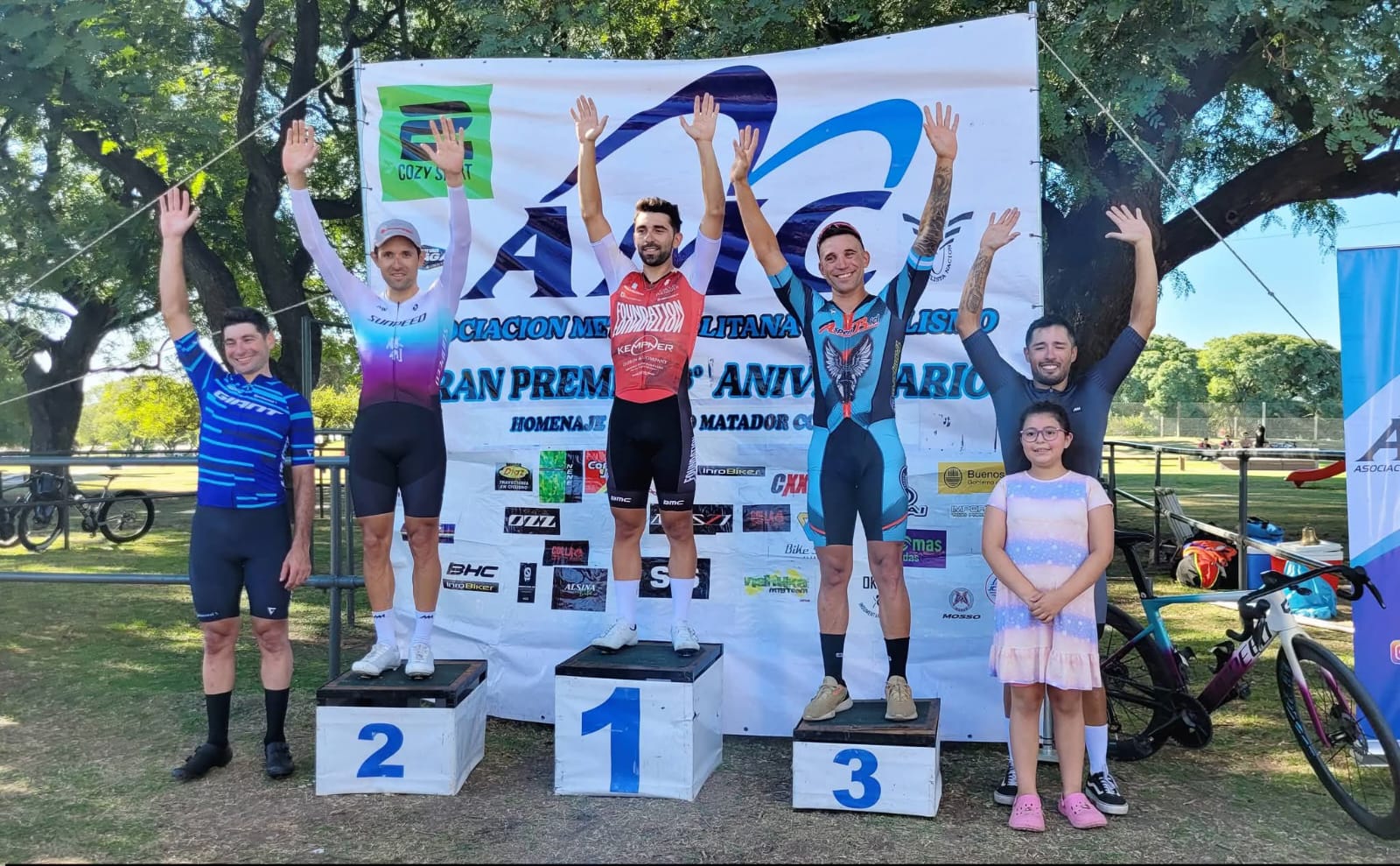 El ganador fue Marcos Mendez un gran sprinter que tiene el pais que viene de representarnos en el panamericano de pista, segundo quedo otro gran sprinter como lo es Sebastian Tolosa representando a pueblos y campos sunpeed, tercero fue el de mar del plata Agustin Fraysse del aspen bici, cuarto quedo Enrique Estevez del giant y el quinto lugar fue para Brian Rios.