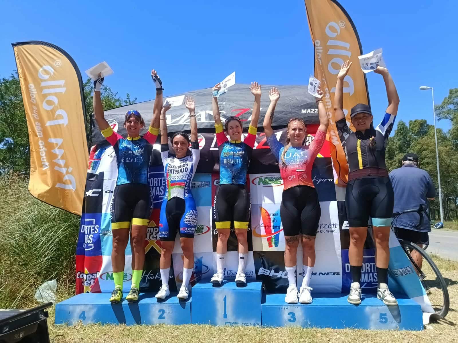En las damas mayores la ganadora fue lorena leroy que corre para el SAT que viene demostrando un gran nivel. Las otras chicas del podio fueron selva pagano de rauch y rosina bertolini otra chica del d´amico cycling que obtiene podio.